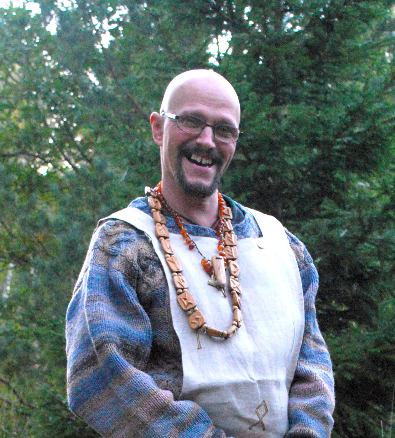 Bor på gränsen mellan Stockholm och Södermanland. Varit aktiv i dåvarande Asatrosamfundet i början av 2000-talet, tagit en paus och är tillbaka som tjänstgörande för medlemmar i Forn Sed Sverige. Tycker det är viktigt med att medlemmar kan kommunicera med varandra så fler blotlag kan bildas. Håller årsblot och utövar sejd är även coach och terapeut i NLP och Neurosemantik. Gillar att trumma, snida, dansa och bada i vackra sjöar i skogen om sommaren.